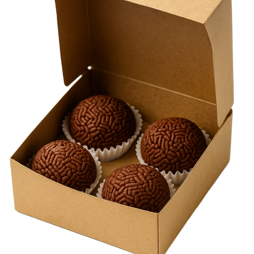 Chocolate ao leite nobre, granulado e brigadeiros tradicionais